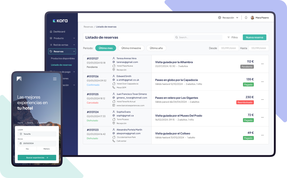 Kora es una solución integral para la gestión y comercialización de actividades en el destino, que tiene en cuenta las necesidades específicas del negocio hotelero.